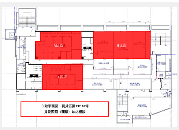 | 3階 | 232.48坪(分割可能) | 15,000円/坪(消費税別) | 賃料に含む | お問い合わせください | |