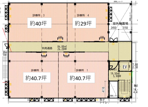 | 4 | 約29坪 | 12,000円/坪(消費税別) | 賃料に含む | お問い合わせください | |
