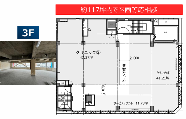 | 備考 | 約117坪の分割案、広さについては希望を踏まえ応相談 |
