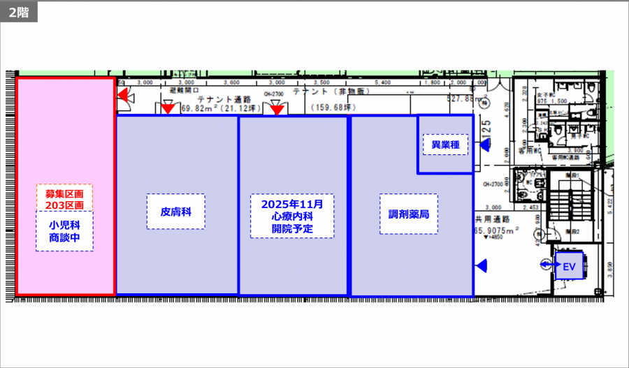 | 既テナント | 1階:調剤薬局予定 生鮮スーパー出店予定 心療内科、皮膚科内定済み 残り1区画、小児科商談中につきお問い合わせはお早めにお願いします。 |