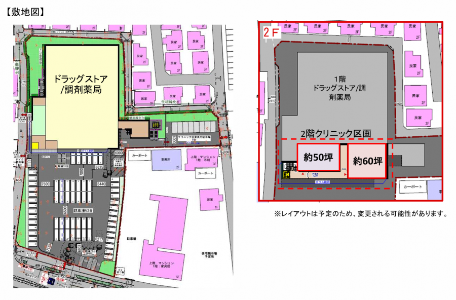 | コメント | JR東海道線「平塚」駅よりバス5分 広い敷地に共用駐車場62台を予定 ドラッグストアを併設した医療モール企画です。 バス通りに面した視認性の良い好立地でドラッグスとオープン後は認知されやすい環境となります。 |