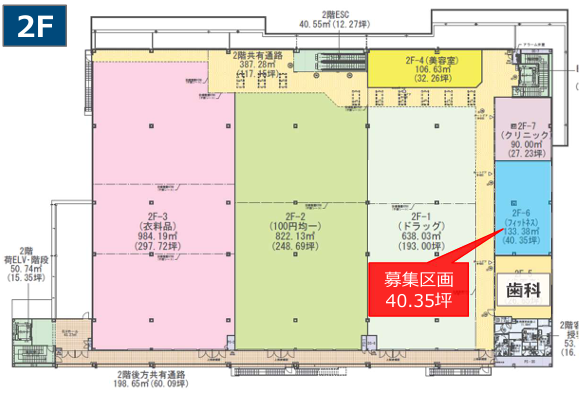 | 既テナント | 1階:生鮮スーパー、物販 2階:ドラッグストア、募集店舗 内科内定済み |